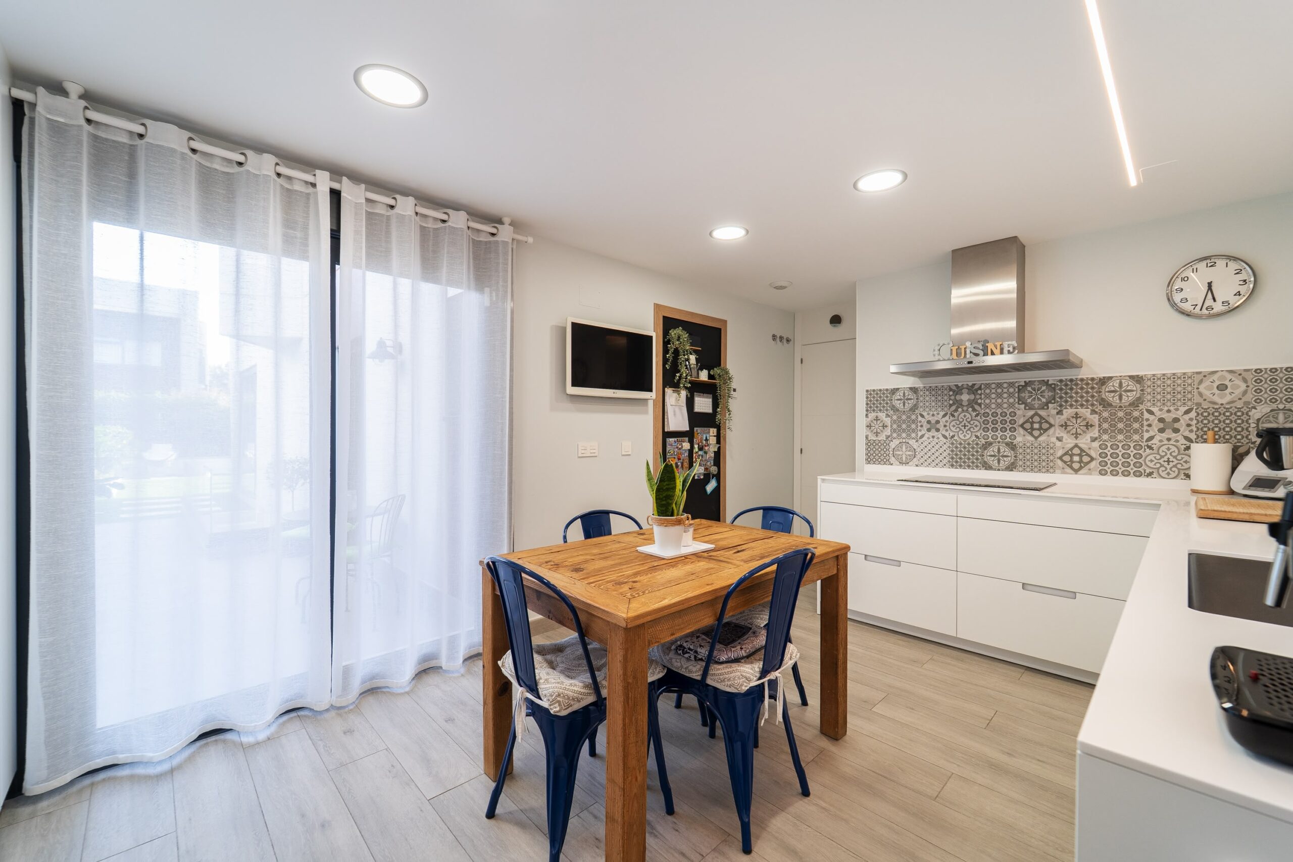 Siguiendo con el recorrido, accedemos a la cocina independiente totalmente actualizada con un espacio de office en el centro, también con salida directa al jardín lo que hace que sea una estancia super luminosa.