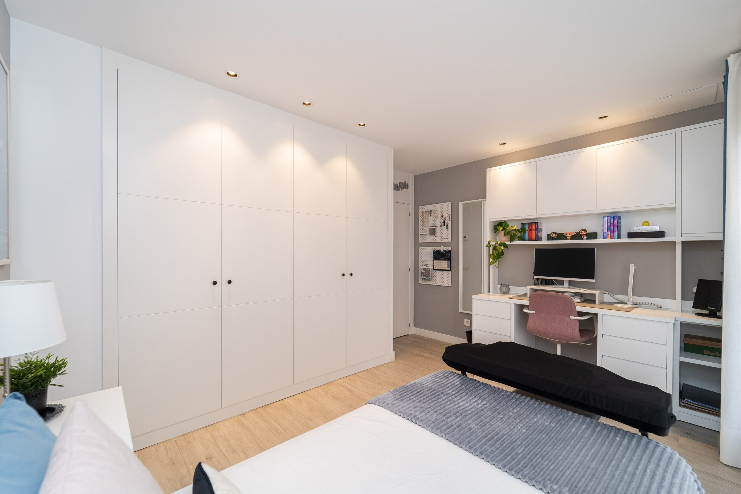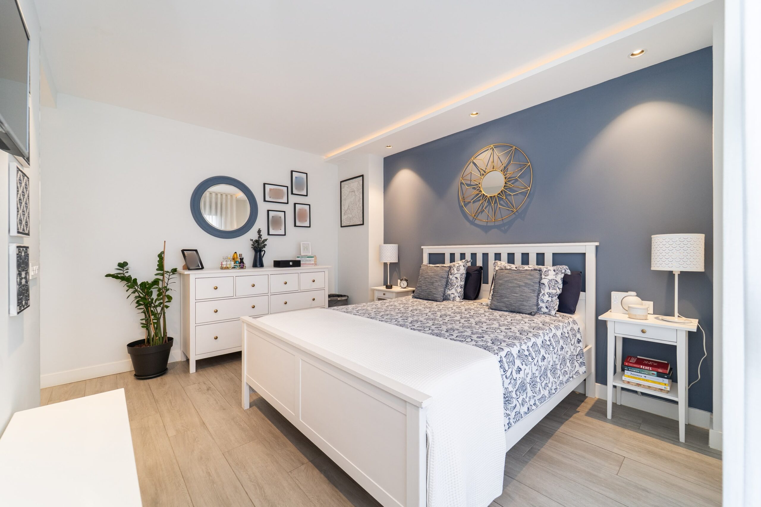 Continuando subiríamos a la planta superior donde encontramos otra zona de distribuidor que da paso a dos habitaciones, ambas muy amplias y luminosas (una de ellas con acceso a una gran terraza), un baño completo con bañera (también con luz natural) y la habitación principal con un vestidor de entrada y acceso a un baño en suite con plato de ducha totalmente actualizado.