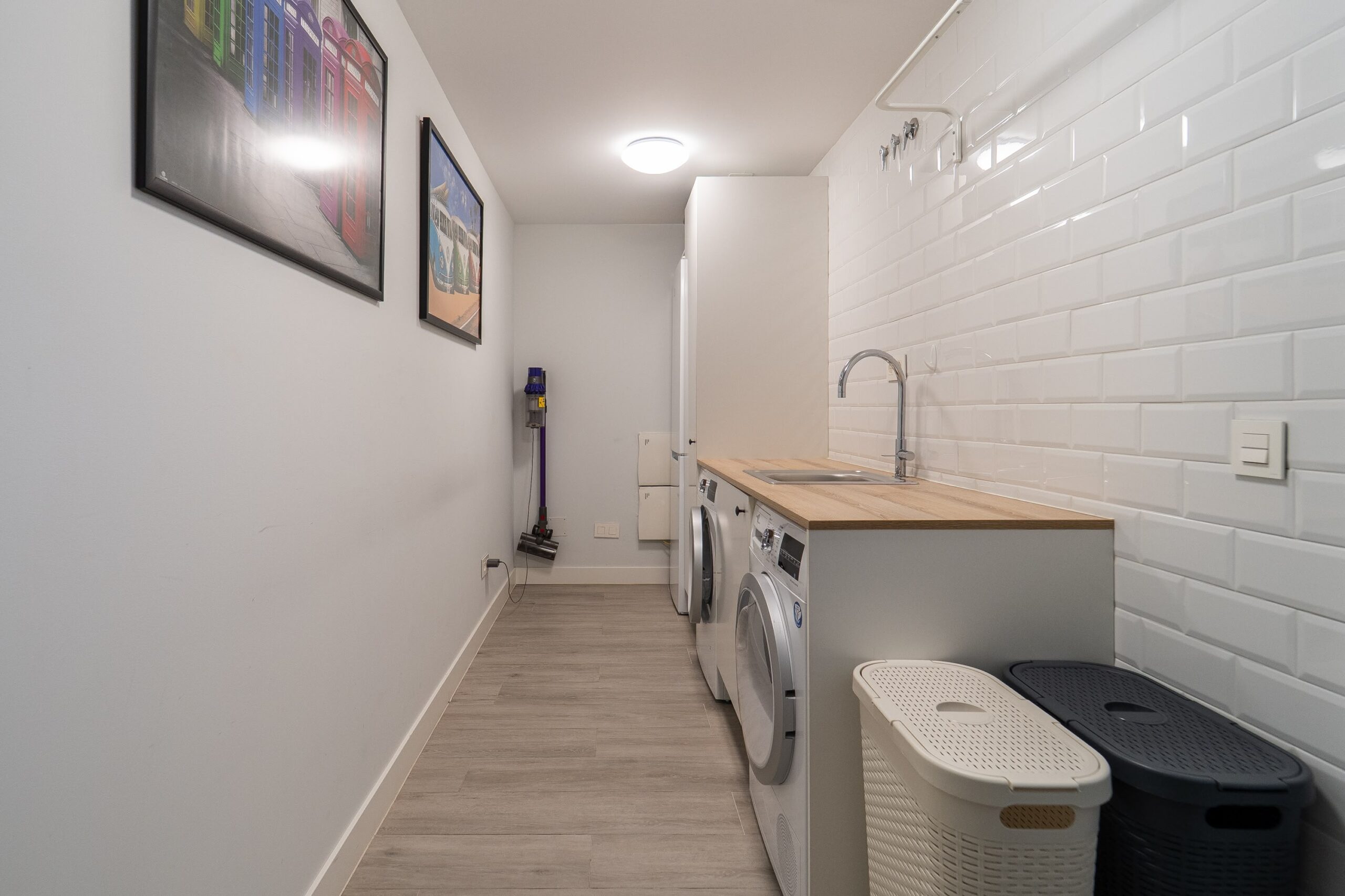 Bajando a la planta inferior nos encontramos con un amplio salón, con habitación y baño completo, además de un amplio lavadero, todas estas estancias con luz natural. A su vez dicho salón cuenta con salida directa al patio privado y cuenta con un trastero donde esta instalado todo el sistema de calefacción mediante GEOTERMIA.