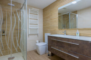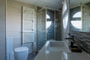 Esta planta alberga un gran dormitorio adicional, también climatizado, con baño completo equipado con plato de ducha.