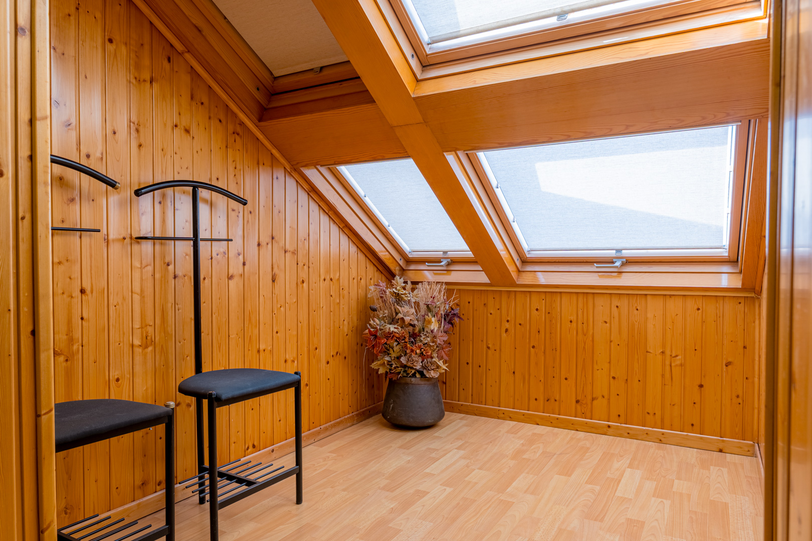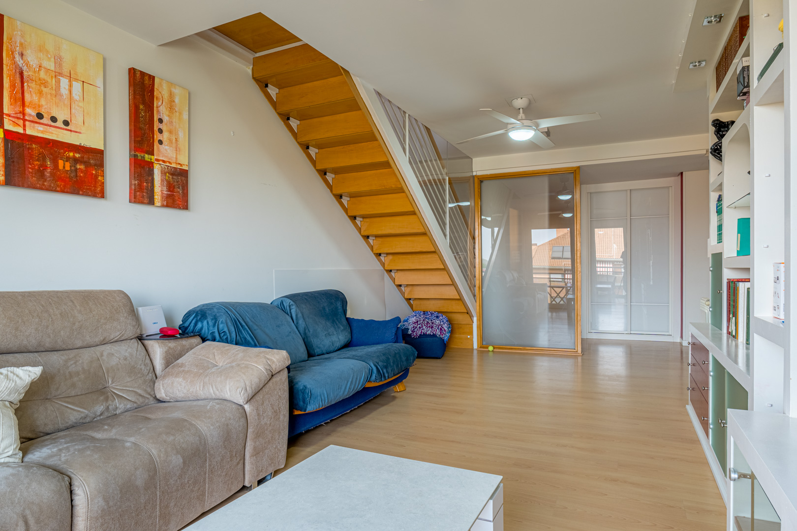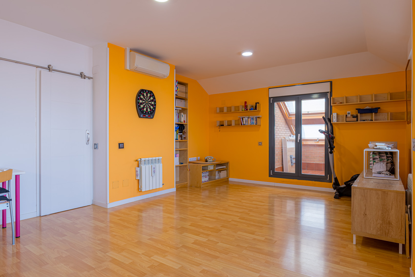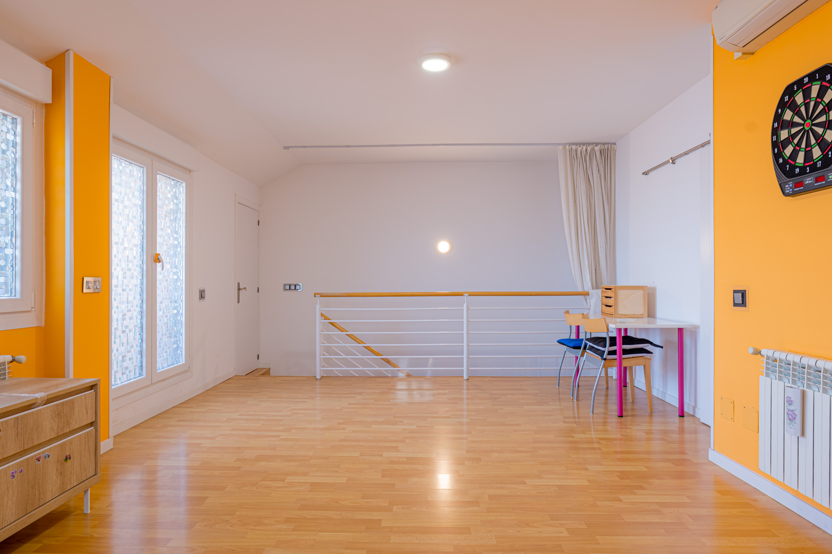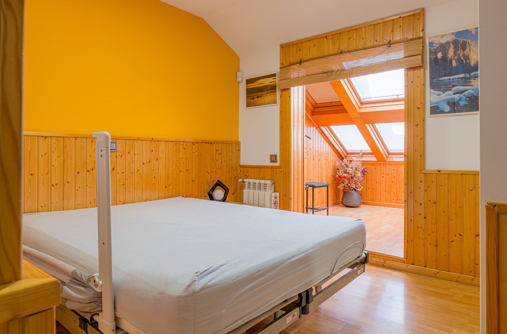 Aquí encontramos un acogedor salón diáfano con aire acondicionado, ideal como sala de estar, zona de juegos o de lectura. Este espacio se complementa con dos terrazas cerradas con ventanas Velux, además de una terraza abierta con estupendas vistas.