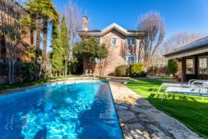 -En cuanto a la zona exterior de la vivienda, contamos con PISCINA independiente con cascada, zonas verdes, barbacoa de obra y una majestuosa CASONA equipada con cocina completa con fuegos, campana y nevera, así como de un BAÑO completo, ideal para celebrar eventos respetando la privacidad de la vivienda.