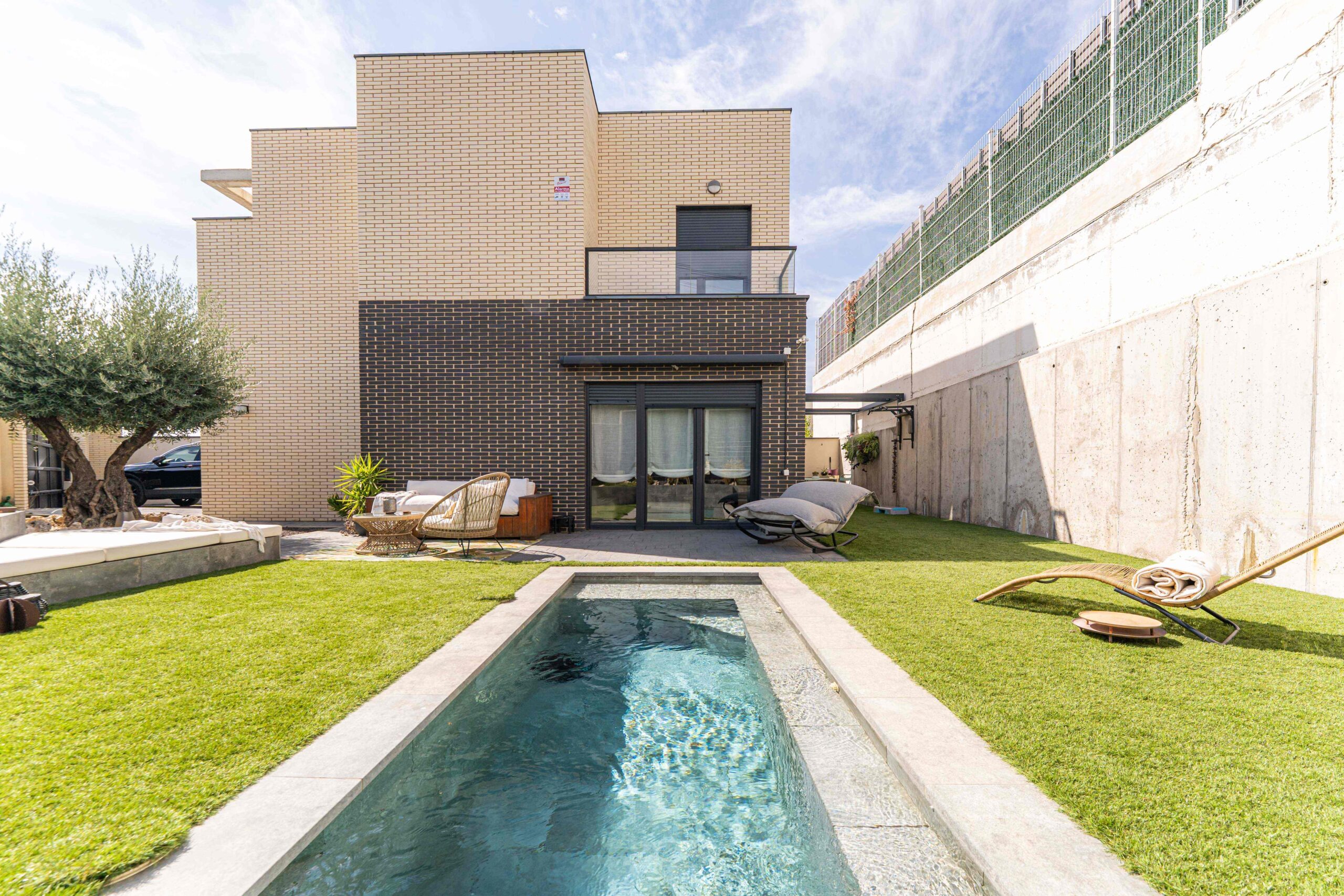 Construido en el año 2017, este chalet destaca por su excelente estado de conservación, sus calidades y su diseño contemporáneo. La vivienda se distribuye en dos plantas, ofreciendo espacios amplios, luminosos y perfectamente aprovechados. En la planta baja, encontramos un elegante recibidor que da paso a un gran salón-comedor, muy luminoso gracias a sus amplios ventanales y con acceso directo a la zona exterior. La cocina, totalmente reformada con un diseño actual y materiales de primera calidad, se presenta como un espacio funcional y moderno, ideal tanto para el uso diario como para quienes disfrutan cocinando. Esta planta cuenta también con un dormitorio en planta baja, ideal como despacho, cuarto de invitados o habitación polivalente, así como con un baño completo, también reformado con gusto y atención al detalle.