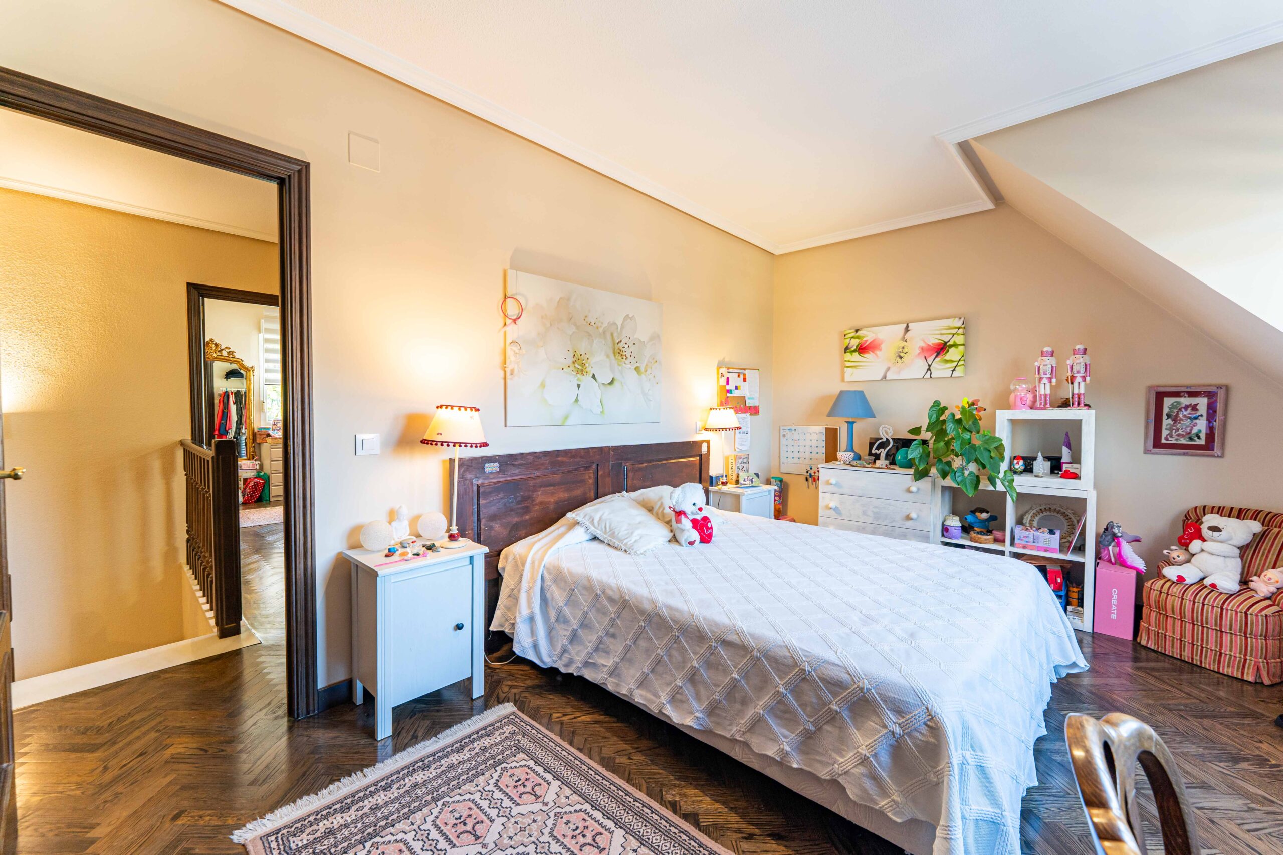 En la planta superior se ubican cuatro dormitorios, destacando la habitación principal con baño en suite. Las tres habitaciones restantes comparten un segundo baño completo, proporcionando comodidad y privacidad para toda la familia.