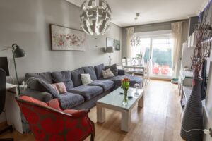 Nos encontramos un amplio salón que da paso al impresionante patio con zona de chill out y pérgolas y una luminosa cocina con zona de lavandería. Cuenta también con tres amplias habitaciones con armarios empotrados y dos baños completos, uno de ellos en suit.